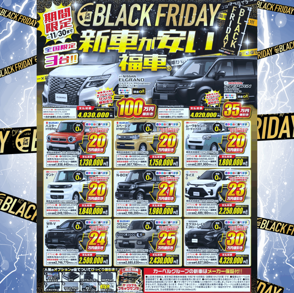 国産メーカーの新車をブラックフライデー極安値引きでご用意しました!
